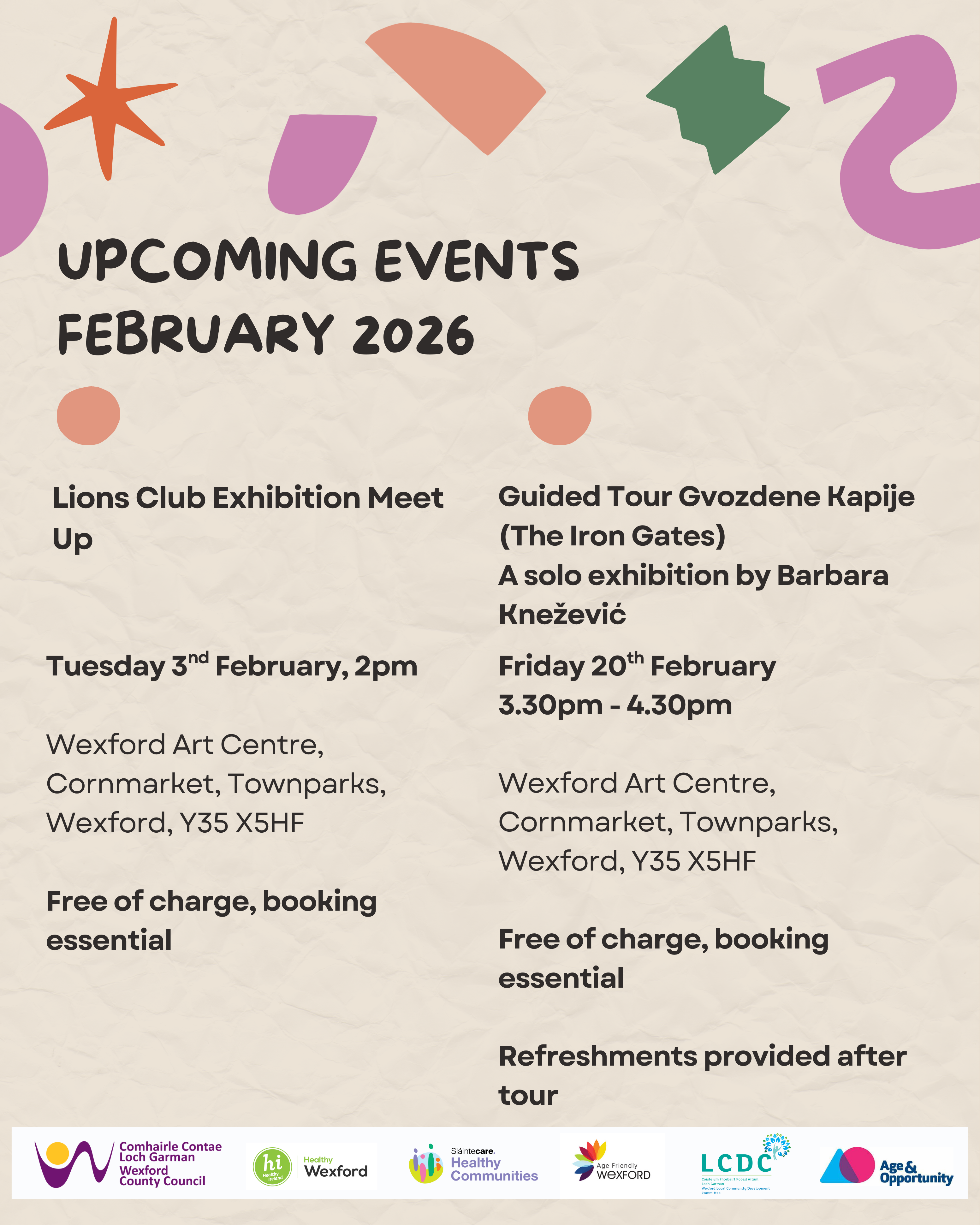 This network is supported by Wexford Arts Department, Healthy Wexford, Slainte Care Wexford, Age Friendly Wexford, LCDC and Age and Opportunity