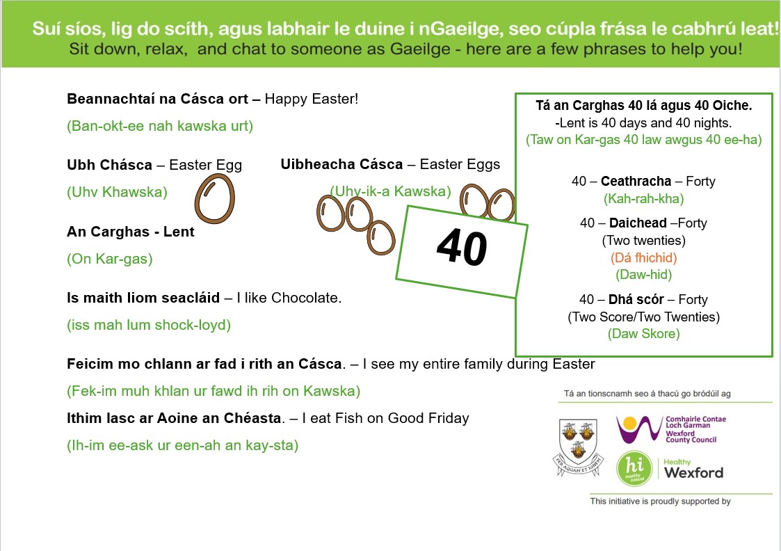 Wexford County Council have developed an area in St Peters Square as a Binse Comhrá - a bench area where people are happy to chat as Gaeilge. This continues the ethos of the Healthy Wexford ‘Happy to Chat’ initiative while incorporating the encouragement to engage as Gaeilge. Working collaboratively the Irish Language Officer, the Wexford Borough District team and Healthy Wexford have developed this initiative together.