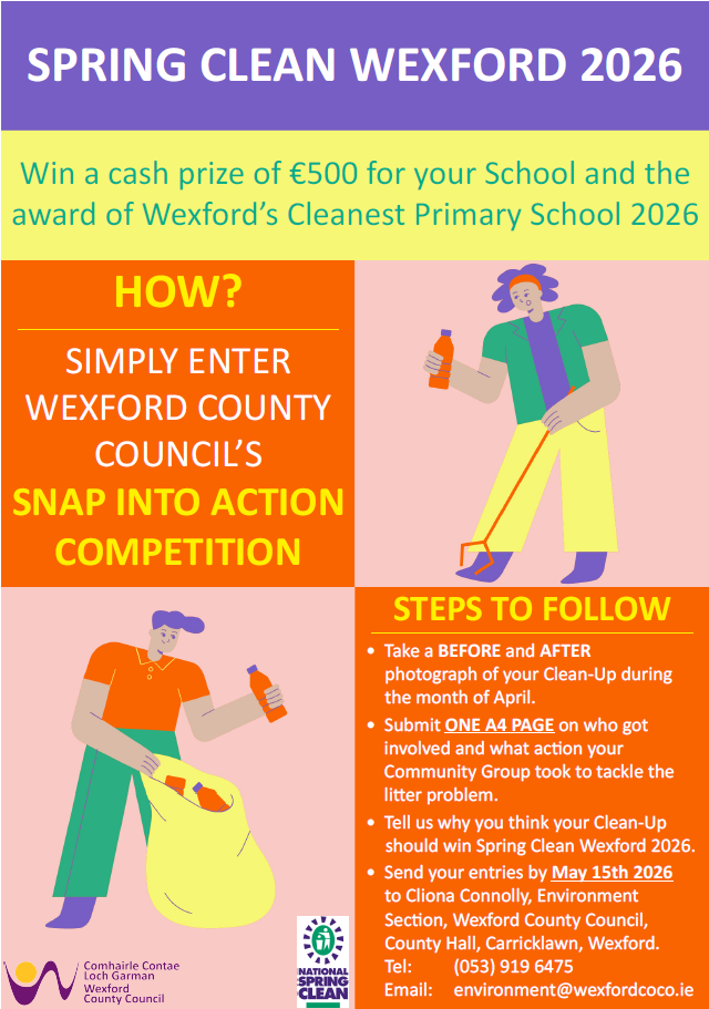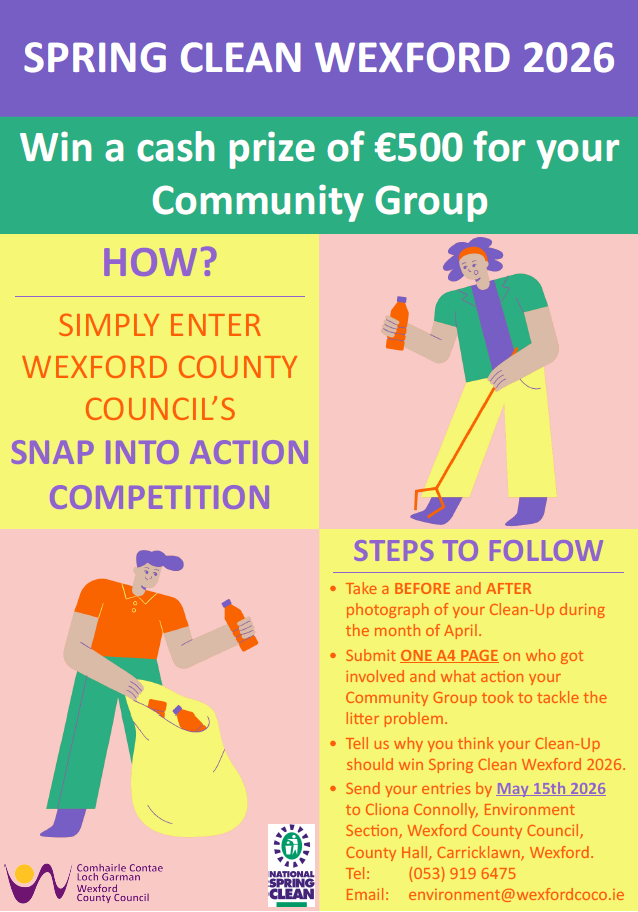 Once your clean-up is complete, please contact Caroline Sinnott, Environment Section on 053 9196684 to arrange collection.