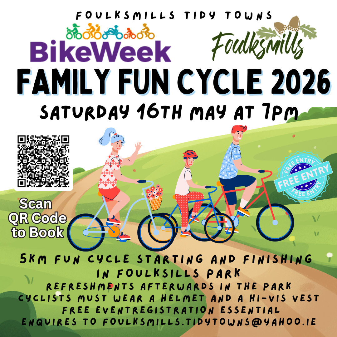 5km fun cycle starting and finishing in Foulksmills Park. Refreshments afterwards in the park. Cyclists must wear a helmet and hi vis and all children must be accompanied by an adult at all times. Registration is essential for this free event as numbers are limited to ensure safety. Time: 7.00pm sharp Date: Saturday 16th May Location: Meet at Foulksmills Park Suitability: All fitness levels. Everyone joining must have a roadworthy bicycle, a helmet, hi viz. Limited spaces Booking: Pre-registration HERE is essential. |