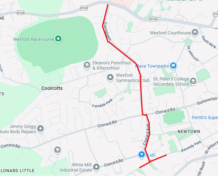 The scheme route will extend from the Hospital Junction onto Beechlawn, along Clonard Avenue and on to towards Whitemill Road.